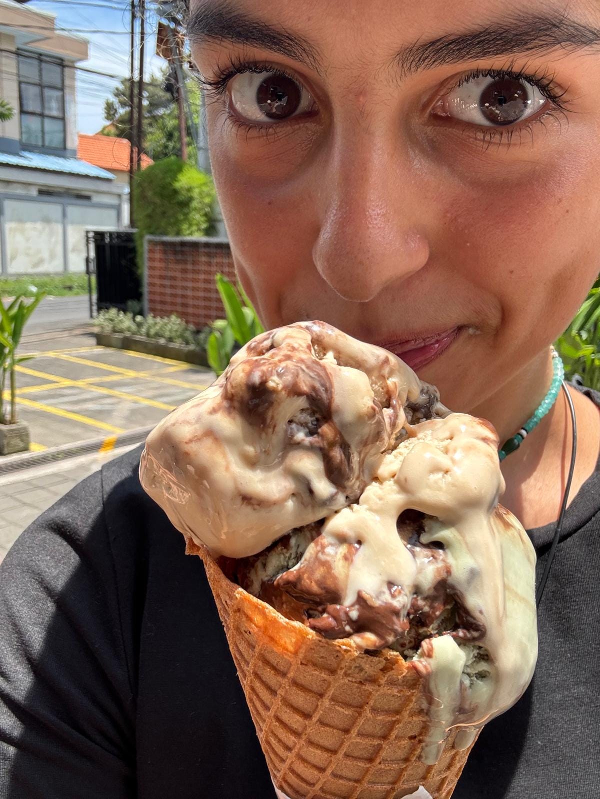 Next to Zest is Plant Bistro, another favorite. If you huff and puff up a steep hill, walk through a stone circle, and up a spiral flight of stairs, there is a glass display of vegan pastries well worth the trek: tiramisu classico, mango passion tart, pistachio macarons, Sicilian cannolis and panna cotta cappuccinos. After we order our pastries, we nibble at each other's deserts and debate who has the most delumptious sweet. But really the best part of our culinary ventures is being sprawled out on bamboo settees and spending time with each other – be it salty, sometimes sour, but mostly sweet.